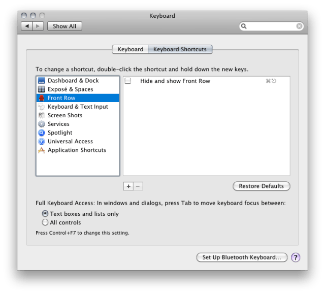 I have never used nor do I really care about Front Row. I’ve even managed to kernel panic my laptop once by invoking it and then trying to get out of it too quickly.